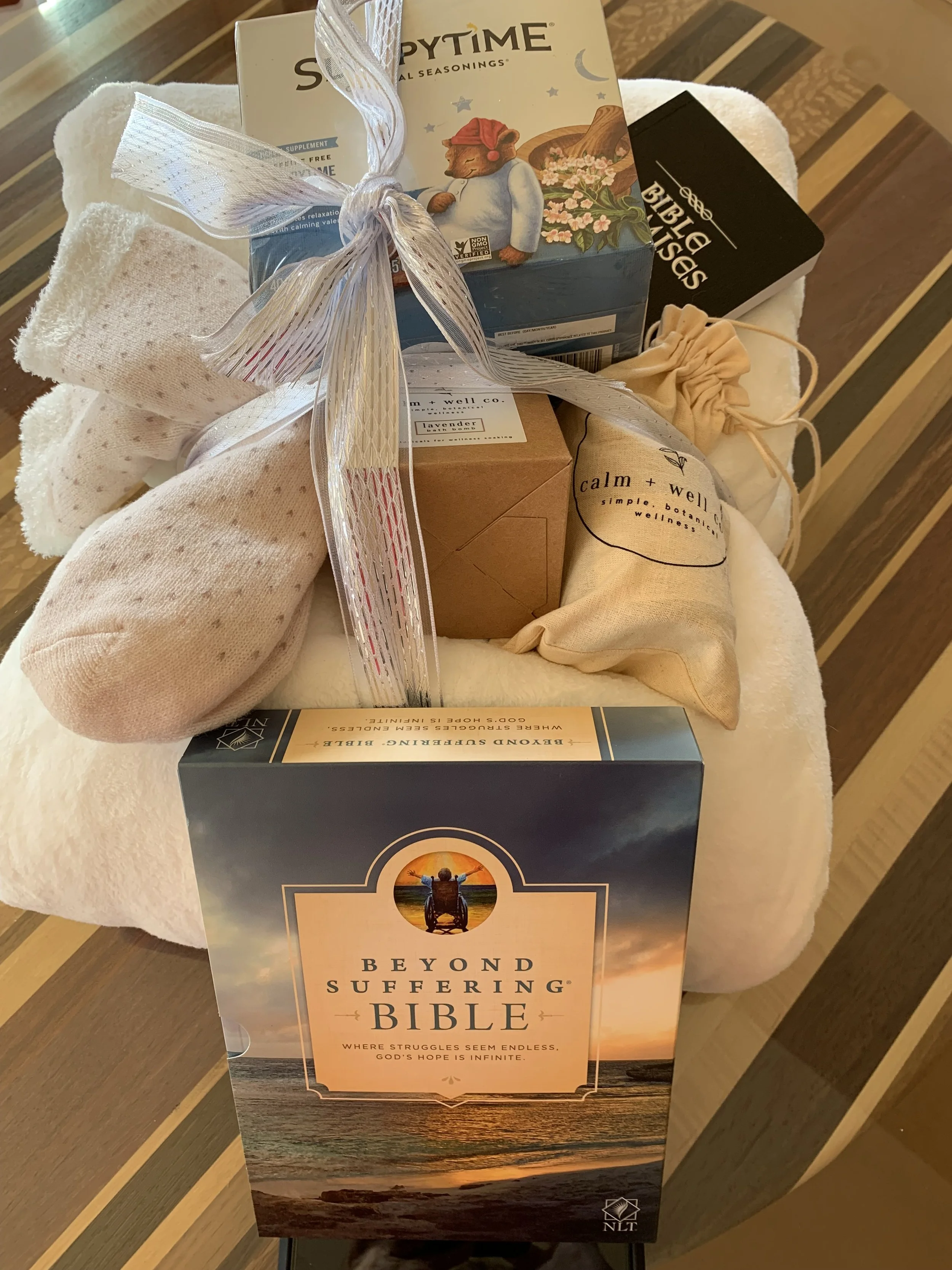 Cancer patients are cold…always! And any cancer survivor will tell you all about the side effects of treatment. Everything from nausea, dry flakey skin, chapped lips, loss of hair and dry mouth. Most Chemotherapies destroy soft tissue starting in the mouth and going all the way south! Needless to say, battling cancer is, at the very least, uncomfortable. When things are uncomfortable and there are no more words…nothing gives comfort to a cancer patient like a Warm Blanket. So, that’s the first thing you will see in a Warm Blanket Bundle…a nice super soft, fuzzy warm blanket. We also include other universal comforts like tea, warm drink gift cards, all natural skincare and lip balms, rice sock warmers, journals, beanies, fuzzy socks just to name few. The things we take for granted are the things that can get a cancer patient through a very rough day.